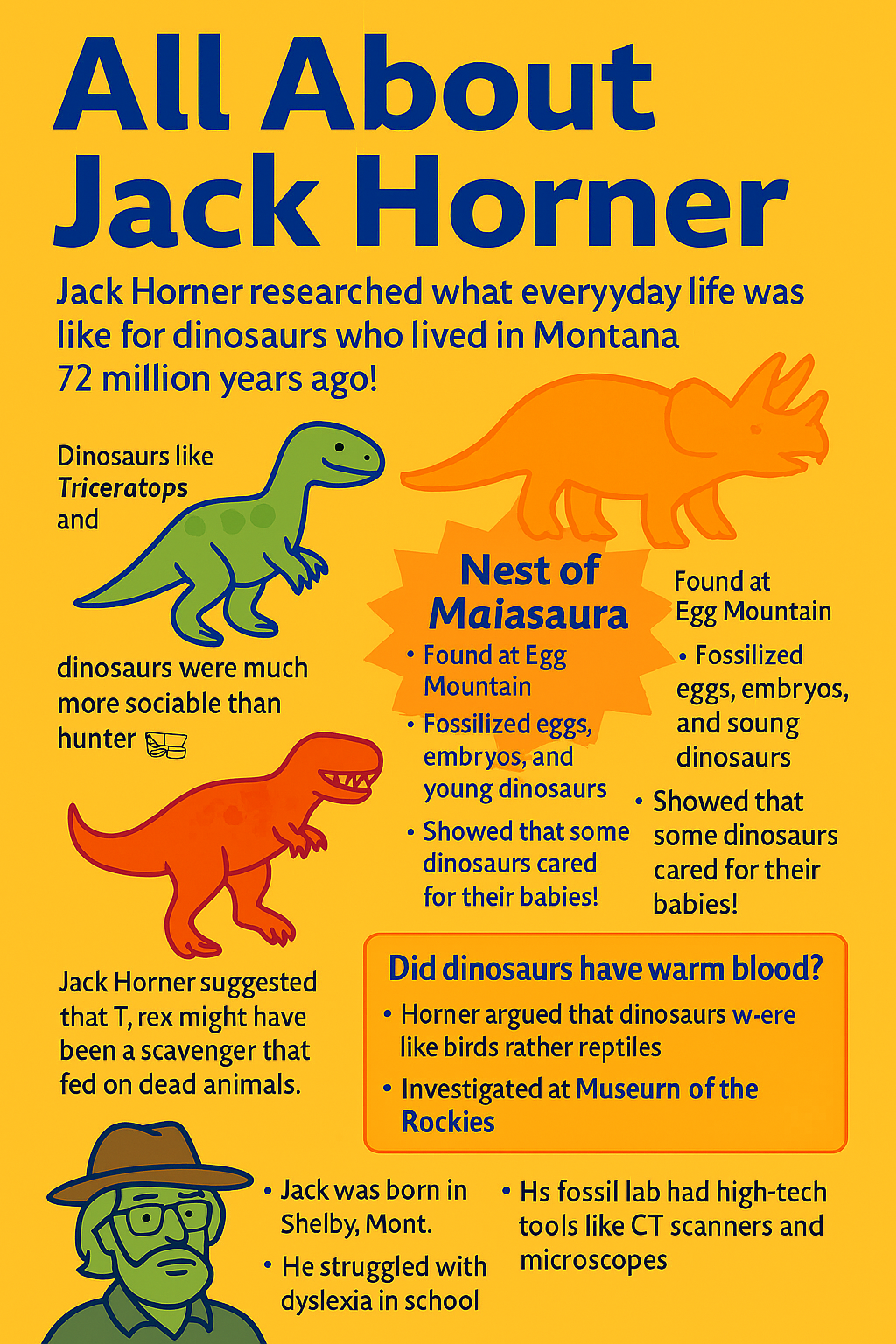 - Horner's research continues to influence debates on dinosaur metabolism, growth rates, and social behavior. Studies confirm that Maiasaura grew rapidly-up to 10 feet in one year-supporting the idea of warm-bloodedness.